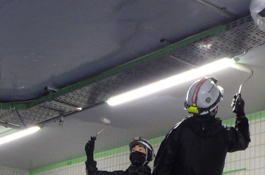 東京都練馬区発注物件で地下駐輪場維持補修工事の1次請けとして元請様より受注頂きました。内容としましてはひび割れ補修工(塗布工法:エポキシ樹脂材)47.9m、(注入工法:2液混合型止水材)33.7m、剥落防止工102.5m(透明剥落防止工法)です。第3者の通行より昼夜の制限もある中での工事でした。