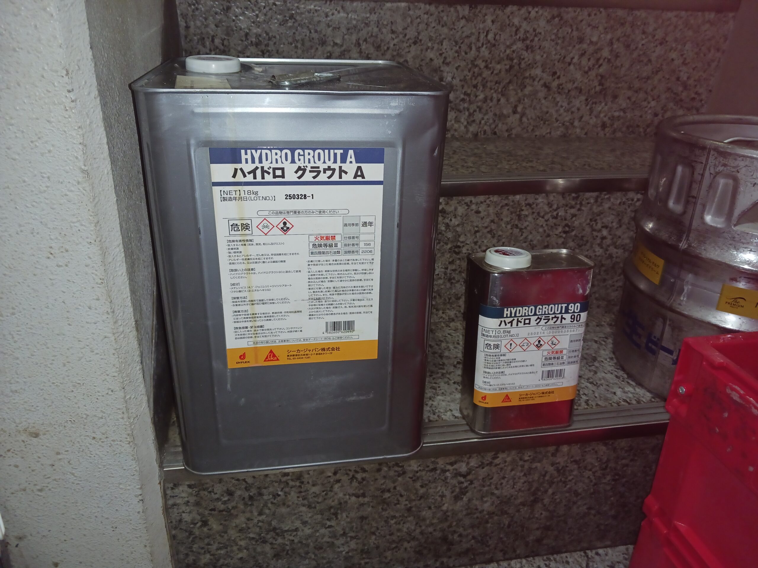 - 2025年1月に弊社ホームページを拝見された民間ビル管理会社様のご依頼で止水工事を行いましたが今回は別ビル地下飲食店BOX止水工事のご相談を頂きました。リピート物件ということもあり、7月25日に現場調査を行いました。漏水状況は、設備配管を通すコンクリート躯体の外側道路マンホールから雨水が浸入して地下飲食店のBOXまで伝わり漏水していることがわかりました。止水工事内容を立案計画してお見積りを提出しました。止水材は、シーカ・ジャパン㈱社製ハイドログラウトAを選定しました。お店との調整もつき、8月5~6日で工事を行いました。壁にはびっしりと高価なお酒が置かれており、細心の注意を払っての作業でした。施工は、予定通り2日で完工でき漏水の心配もなくなりました。漏水にお困りの方は、是非電話でのご連絡くださいね💦